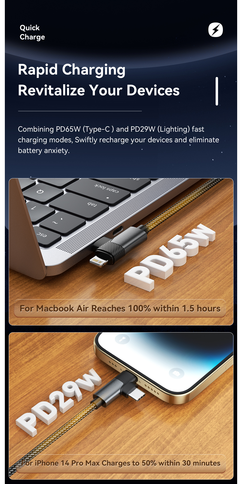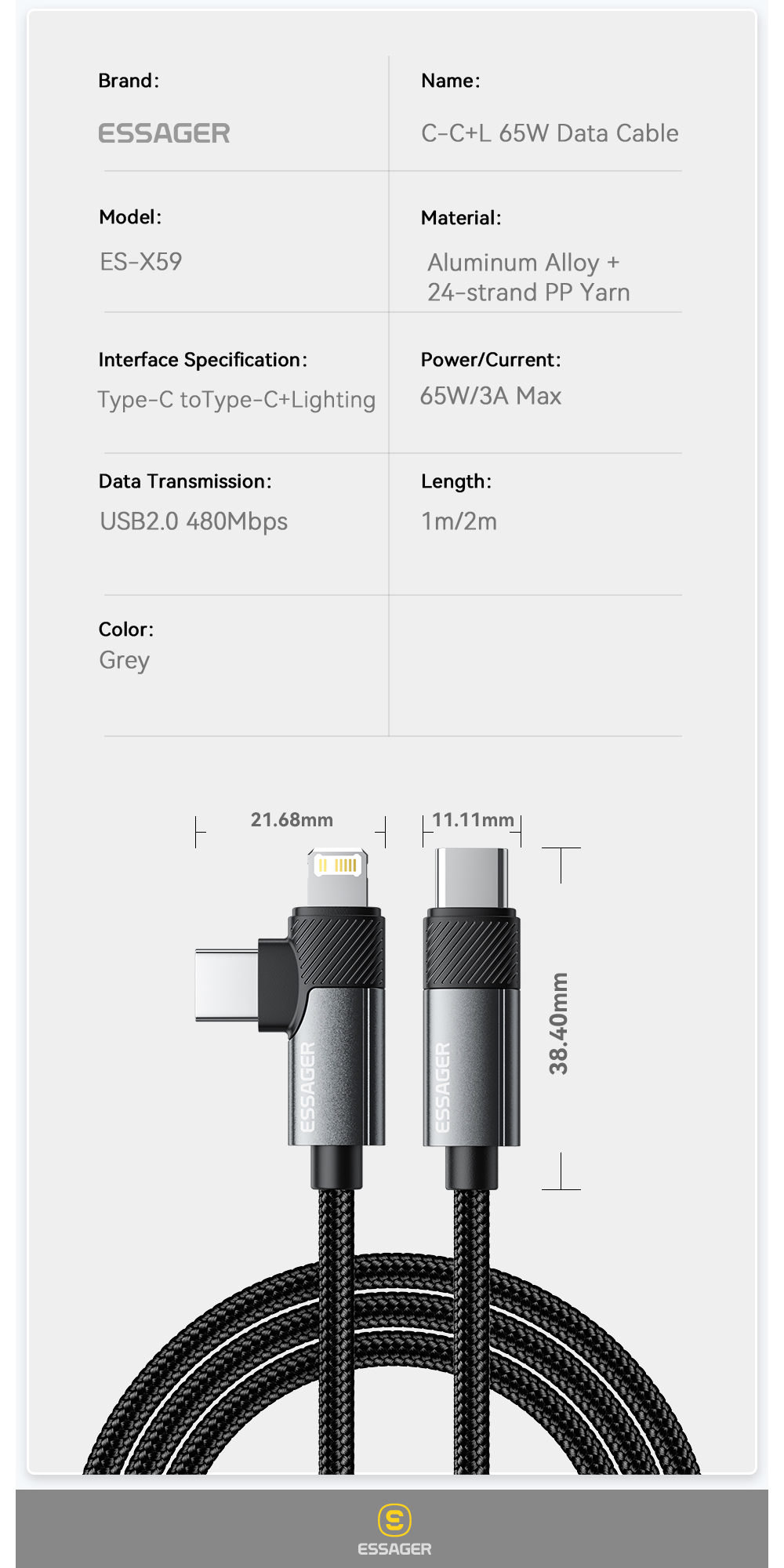 تدعم الوصلة طاقة الشحن تصل الى 65 واط ، تحتوي الوصلة على منفذ Type - C لدعم الشحن السريع