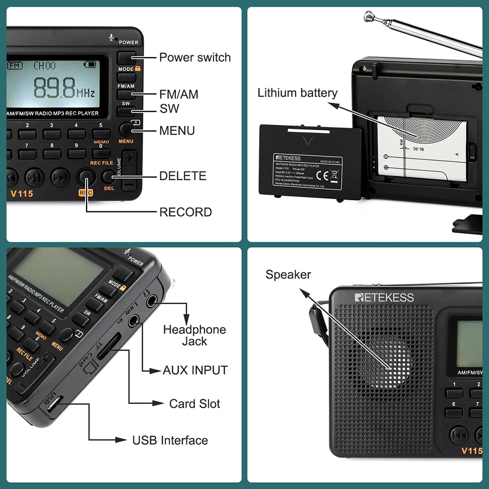 ويتميز كذلك بوجود شاشة تدعم الاضاءة المريحة للعين من اللون الابيض وتتواجد في الشاشة مؤشر نسبة شحن البطارية وكذلك قوة الاشارة ورقم القناة الخاص براديو